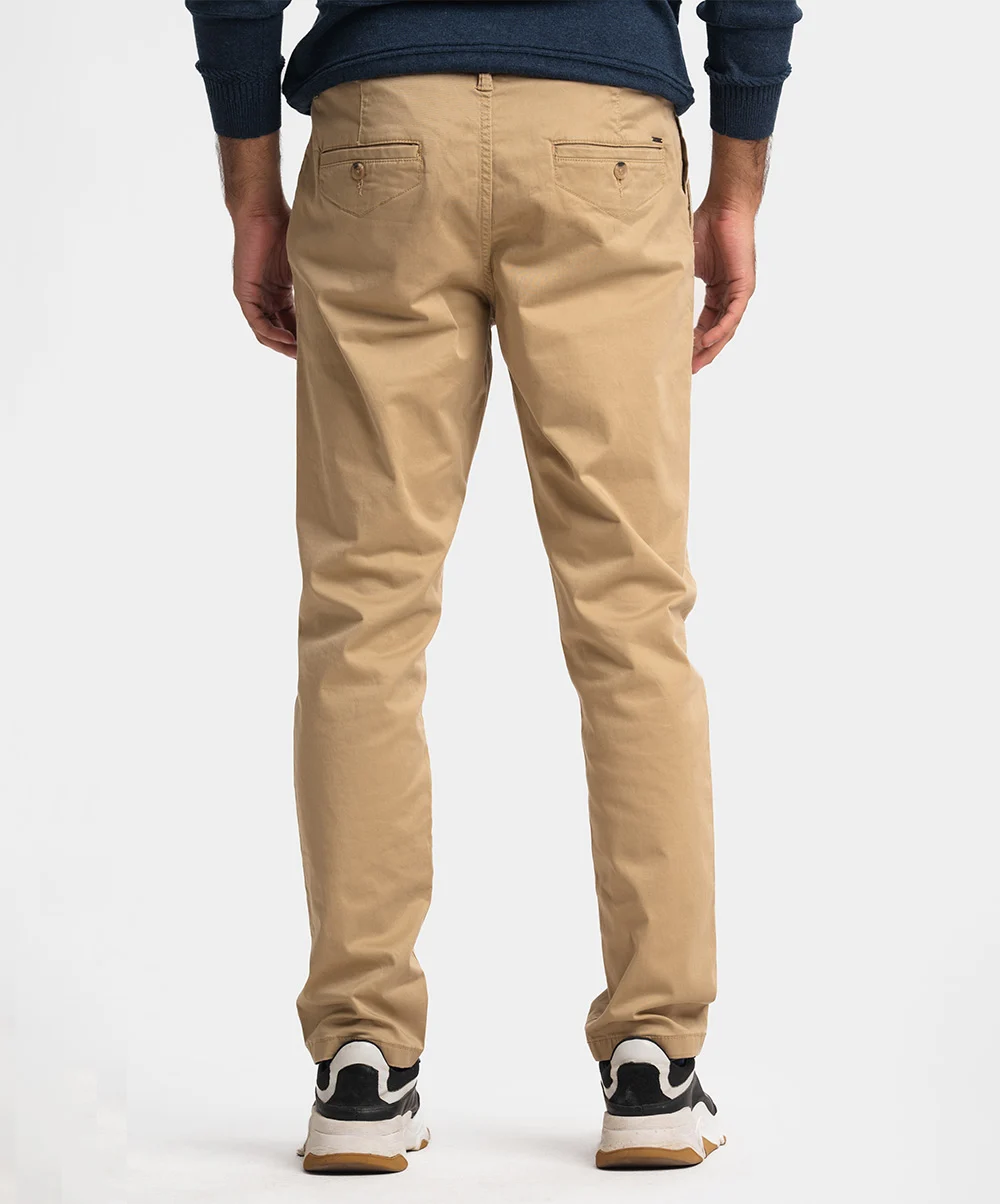 Brown Cotton Slim-fit Chinos Pants