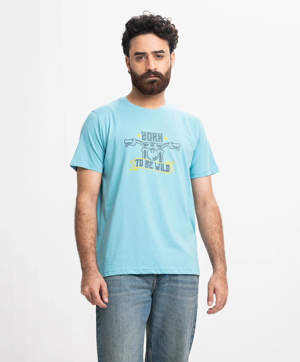 Sky Blue Cotton Short Sleeve T-shirt